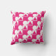 Una almohada rosa de lanzamiento con un círculo, triángulo y patrón cuadrado del juego
