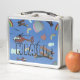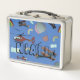 Un divertido ilustracion de aviación colorido con globos de aire caliente, aviones, helicópteros con arcos de lluvia, nubes y pájaros sobre un telón de fondo azul de ensueño donde en la parte superior se puede personalizar con un nombre para hacerlo único.