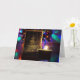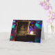 Esta hermosa tarjeta de Navidad presenta una vela encendida que se sienta frente a una tarjeta que presenta un árbol de Navidad brillante, con luces coloridas de vacaciones que iluminan suavemente el fondo. La cálida luz de la vela crea una atmósfera acogedora y festiva. Esta tarjeta presenta una fotografía clásica de vacaciones y arte dibujado a mano por el fotógrafo jefe de God Bless the Keg Publishing LLC, Sr. Paul John Hausleben.