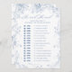Haga que su evento sea memorable con nuestra tarjeta de juego Personalizada Algo Azul Bridal Shower Who Said. Perfecto para una idea de ducha de novia azul, esta actividad divertida complementa un tema de ducha de novia azul y añade encanto a las ideas de ducha de novia azul. Diseñado para una ducha de novia azul o una ducha de novia azul, este juego es un toque encantador para celebrar algo azul antes que yo. ¡Ideal para un poco de azul antes de ducharme!