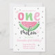 El diseño incluye sandía y semillas. En tonos rosas y verdes. Nuestra pequeña dulzura es una en un melón. Invitación de primer cumpleaños para un tema de la sandía. Información de cumpleaños editable.