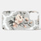 Una funda para celular con un motivo de flores, en colores tenues, delicados.