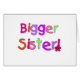 ¡Las camisetas de una hermana más grande, tazas, las bolsas de asas, botones, y más, perfeccionan para el la hermana del tamaño, rosado de las características, púrpura, verde, y anaranjado medios diseño brillante del texto!