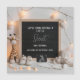 Escenario minimalista de invitación de embarazo, perfecto para los futuros padres modernos. Este diseño suave y simple presenta una acogedora guardería con una tabla de letras de fieltro que revela las grandes noticias, un lindo juguete de peluche sentado con dulzura a su lado, zapatos para bebé, un gorra pequeño y ultrasonido para su bebé.