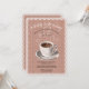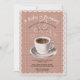 Esta elegante invitación de baby shower con taza de café con acuarela presenta una cálida taza de café y burbujas de vapor en forma de corazón contra un fondo marrón con un borde de cuadros y encaje. El texto es fácilmente personalizable.