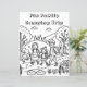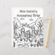 Una página de color con un tema de camping. Una familia caminando por las rutas de senderismo a través de árboles y montañas en su viaje de campamento. Una página de coloración para niños o adultos.