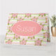 Bonita tarjeta de cumpleaños floral y de rayas, el diseño está en coral, rosa, y una mezcla de verdes, el texto dentro y fuera puede ser personalizado para cualquier ocasión especial.