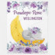 Adorable y lindo elefante durmiendo en un banano maduro con hermosas flores moradas, nombre personalizado y apellido personalizado.