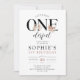 Pequeña y caprichosa, pequeña señorita ONEmaravillosa acuarela boho números florales chica 1ª invitación de cumpleaños. Rosa y negro.