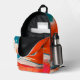 es una mochila con una imagen de un remolino azul y naranja sobre ella