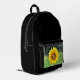 Esta alegre mochila es toda negra excepto por una foto brillante en el centro y en el frente de un girasol "sonriente", cortesía de una visita oportuna de un par de abejas. Completamente alineada y de aproximadamente 17" x 12 x 5", esta mochila ligera está hecha de poplin de poliéster duradero, tiene dos cámaras dentro para almacenamiento de laptops, bolsillos laterales de malla y una etiqueta de identificación. Las correas de hombro son acolchadas y ajustables. Siéntase libre de contactarme a través de Zazzle si tiene preguntas sobre esta mochila. Estoy feliz de ayudar y no hay costo adicional.