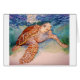 Tortuga de mar del necio, acuarela hermosa con una gama del espectro de tonalidades de la costa costa de la Florida con esta tortuga de mar mostrada arriba el título del buceador hacia la orilla. Los modelos preciosos se pueden considerar en la cara, las aletas y la cáscara.