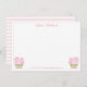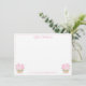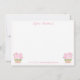 Un diseño de tarjeta de nota personalizada clásico moderno con una maceta de mimbre llena de hortensias rosadas. El reverso tiene una impresión de rayas de "seersucker" rosa y blanco. Puedes cambiar el rosa del borde y del reverso rayado a cualquier otro color que desees ingresando a la herramienta de diseño ("haz clic para personalizar más" debajo de las casillas de personalización de texto).