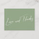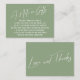 Estos sencillos y distintivos insertos de tarjetas fueron diseñados para coincidir con otros elementos de un creciente conjunto de eventos que cuenta con un moderno tipo de letra de escritura informal sobre un fondo liso que puede cambiar a cualquier color que desee. En la parte delantera lees "A Note on Gifts" en el tipo de presentación; en la parte trasera he colocado un "Love and Gracias" correspondiente. El tipo editable se representa en una letra de tipo "all-caps" y "serif". El mensaje del titular de mi lugar dice "Lo más importante es tenerte con nosotros en nuestro día especial. No se necesitan ni esperan regalos, sin embargo, nos han preguntado qué necesitamos o qué nos gustaría. Si quieres darnos algo, te agradeceríamos un poco de dinero para pasar nuestra luna de miel. "Siéntase libre de usar los campos de plantilla y edite esta copia con su propio mensaje personal para hacer que estas tarjetas sean suyas. // 151 //