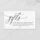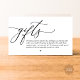 Celebra el comienzo de tu viaje junto con nuestra elegante carta de invitación a la boda de "regalos" con tema blanco negro. Con una sofisticada combinación de escritura moderna y encanto romántico, cada tarjeta está meticulosamente diseñada para transmitir la esencia de su día especial. Perfectamente adaptado para parejas que buscan una forma única de compartir sus sueños de luna de miel, esta tarjeta invita a sus seres queridos a contribuir con experiencias inolvidables. Ya sea enclavado en un sobre de lujo o presentado junto a sus invitaciones nupciales, nuestra tarjeta le agrega un toque de encanto a su celebración, prometiendo recuerdos muy apreciados que duran toda la vida. Diseñado por Teesha Derrick.