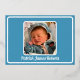 Este es un Relieve metalizado sobre el anuncio del nacimiento de un bebé azul. Tiene un corazón de Relieve metalizado y una mano de bebé por un lado, y la foto del bebé por el otro lado. El nombre de tu nuevo paquete aparece en ambos lados, uno en Relieve metalizado.