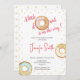 Envíe estas lindas invitaciones para una ducha de bebé dorada a la familia y amigos. Un donut de oro está en camino de la invitación a la ducha de bebé. Personalizar estas invitaciones con su nombre y detalles.