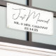 Una pequeña pancarta retro para coche de recién casados Este diseño moderno de "Recién casados" es una divertida adición para el coche de escape de la pareja.