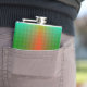Una petaca metálica con un gradiente de color verde a amarillo, que presenta un patrón sutil de pequeños diseños de flor de lis. El tono es vibrante y llamativo.