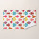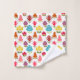 Este conjunto de toallas tiene un diseño moderno de mediados de siglo de flores hechas de cuadrados, óvalos y diamantes que han sido manipulados para formar flores.