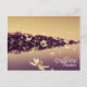 Postal con hermoso paisaje romántico floreciente, con muchas flores flotando en un paisaje abstracto reflejando en un río tranquilo, en colores atardeceres. Envíen flores, envíen amor.