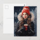 La postal de café de invierno es un regalo ideal para los amantes del café y los amantes del invierno por igual. Con un fondo de noche nevada, una taza de café de papel rojo y una inscripción personalizable en la taza, es un saludo perfecto para aquellos que aprecian la magia del invierno y el calor de una buena taza de café.