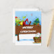 Ilustracion de una rana de Santa encima del cartel de los navidades