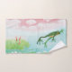 Una Rana Verde Salta Al Ilustracion - Libro. Saltando tema de rana. El tranquilo estanque de aguamarina con nenúfares rosa pálido y hojas verdes. Una Rana Verde Salta Al Estanque. ¡Splash! El sonido del agua.