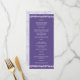 Las audaces tarjetas de menú de la recepción de bodas ultra violeta en color morado y blanco con un sencillo y romántico diseño de viñas de garland le darán un ambiente perfecto. Mi obra de arte original de follaje retorcido en blanco y un suave borde de lavanda en la parte superior e inferior de la carta - la parte trasera tiene un suave mármol falso con un sello central que consta de los nombres de Bride y Groom enclavados en una corona botánica a juego en un círculo violeta Ultra Violet.