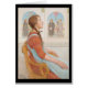 Bonito de chica sueco tradicional sentada en la iglesia con los ojos levantados. El arte mural detrás de ella incluye a Mary debajo de una cruz. Carl Larsson vintage fino arte c1917. Revelación de "Uppenbarelse"