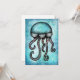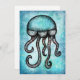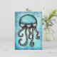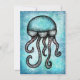 Una medusa Amenable presenta una maravillosa medusa dibujada sobre un fondo azul y acuático con página de libros y acentos rojos.