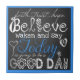 ¡Nuestra teja inspiradora del buen día ofrece un diseño del texto usando diversas fuentes del blanco en un fondo negro de la mirada de la pizarra con un estallido del azul para el color con una frontera a juego azul! ¡El texto lee "esperanza de la confianza de la fe…… cree, waken y diga va hoy a ser un BUEN DÍA"!