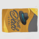 Una toalla amarilla y gris con un gorra y el mejor papá.