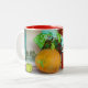 Una taza colorida con una foto de la vida en el jardín con una calabaza naranja soleada, una lata de leche y una taza roja. Agradable acento rústico en la decoración de su cocina, un gran regalo para los amantes de la comida y la jardinería. Por favor, personalícelo con su texto! Para más modificaciones, haga clic en "Editar diseño".