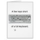 Un giro geek en la vieja metáfora "unos pocos payasos cortos de un circo" o "no disparar a todos los agitadores" muestra un teclado con las teclas perdidas y dice, "unas pocas teclas menos un teclado completo". Perfecto regalo divertido para los gordos novatos en la computadora o amigos con tecnología inflexible con sentido del humor.