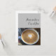 Imagen de capuchino sobre fondo gris con las palabras 'Únete a mí para una Copa de Joe'. En blanco en la parte de atrás del mensaje.