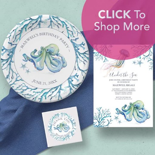 Este listado es para una linda invitación a la fiesta de cumpleaños del niño del mar. Una encantadora invitación costera con una réplica de mi pulpo acuático original, estrella de mar, tortuga marina y coral en tonos azules con un toque verde. Se proporciona amplio espacio para añadir hasta 2 nombres a una invitación de cumpleaños gemela. Esta invitación de alta calidad es perfecta para fiestas náuticas y de playa. Para ver los productos de moda coincidentes visite www.zazzle.com/dotellabelle Material gráfico y diseño de Victoria Grigaliunas