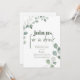 Si amas lo clásico, esta invitación de estilo simple y acogedor es perfecta para ti. La invitación presenta un diseño elegante, con un fondo blanco con detalles delicados de fiesta bellamente escritos en un texto verde que emana un aire de sofisticación. Verdes suaves enmarcan el borde. Da la bienvenida a tus invitados a tu cena de inauguración de casa con estilo. El color de fondo y el texto son editables.