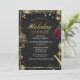 Invitación de la cena de vacaciones en negro y oro con adornos de purpurina dorado de imitación metálica de oro