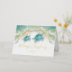 Las tarjetas de Navidades de playa de Do Tell A Belle son una opción encantadora para enviar a amigos y familiares esta temporada. Cuentan con una parte superior de mi original tortuga acuática y olas de mar en tonos turquesa, azul y verde. La palabra "Feliz Navidad" y tu saludo personal están fijados en Relieve metalizado de oro con letra grabado en relieve. Utilice los campos de plantilla para agregar sus detalles personalizados. La tarjeta está en blanco dentro para el saludo de su personalizado. Una moda costera pero tropical para las vacaciones. Para ver más tarjetas de vacaciones de tortugas marinas visita www.zazzle.com/dotellabelle Arte único y diseño de Victoria Griglaiunas de Do Tell A Belle.