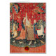 Tejidos antiguos en Bruselas alrededor de 1500. Princesa haciendo música en el jardín de flores con un unicornio, león y otros animales.