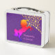 Elegante CHICA UNICORN LUNCHBOX con imagen de UNICORN multicolor y fondo de estrellas de color dorado sobre un fondo RICO PURPLE. Hay un nombre de marcador de posición y mensaje de afirmación, que es PERSONALIZABLE y se puede personalizar con tu nombre y mensaje. Este LUNCHBOX haría un regalo encantador en Navidades, cumpleaños o de vuelta a la escuela. También es genial para cualquier fan del unicornio. Parte de la colección UNICORN de diseños bereanos, donde hay artículos a juego disponibles para crear algunos grandes conjuntos de regalos.