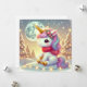 Envía deseos navideños serenos con esta encantadora tarjeta que muestra un unicornio bajo un cielo iluminado por la luna, rodeado de luces centelleantes y árboles festivos.