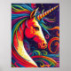 Relájese en su habitación con este majestuoso unicornio y su largo y colorido poster. Una forma de arcoiris azul, rojo, naranja, verde y morado contra un cielo estrellado nocturno hace que los colores destaquen.