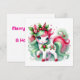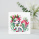 Esta tarjeta de unicornio festivo de vacaciones presenta un cuerno inspirado en bastones de caramelo, decoraciones de acebo vibrantes rojas y verdes, y una expresión alegre. ¡Una elección caprichosa para difundir la alegría de la temporada navideña!