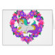 polluelo lindo del unicornio del arco iris en un corazón floral