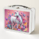 Un unicornio mágico con flores y colores brillantes. Agregue el nombre de su hijo sin costo adicional.