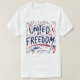 El diseño de la camiseta "Unidos por la libertad" presenta un audaz tipo de letra de graffiti con colores y goteos vibrantes, lo que crea un aspecto dinámico y rebelde. La frase está fijada en un fondo simple y sólido, lo que permite que la tipografía ocupe el centro del escenario. Este diseño es perfecto para cualquiera que quiera expresar su creencia en la libertad y la individualidad.