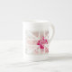 una taza de la porcelana de hueso inspirada por acentos británicos.
