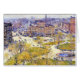 Union Square en primavera (1896) de Childe Hassam es una pintura de paisaje de arte fino impresionista vintage. Una vista aérea de Union Square en la ciudad de Nueva York. En primer plano está el techo a dos aguas de la pequeña estación de comodidad pública dentro del parque. En el centro hay parches de césped verde, jardines y céspedes con árboles que comienzan a florecer. Al otro lado de Union Square están los edificios en la calle 14.